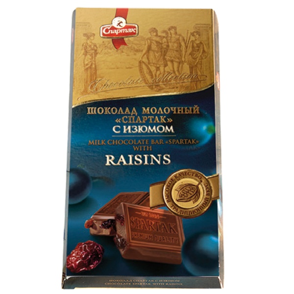 Шоколад Спартак с изюмом 90г пенал