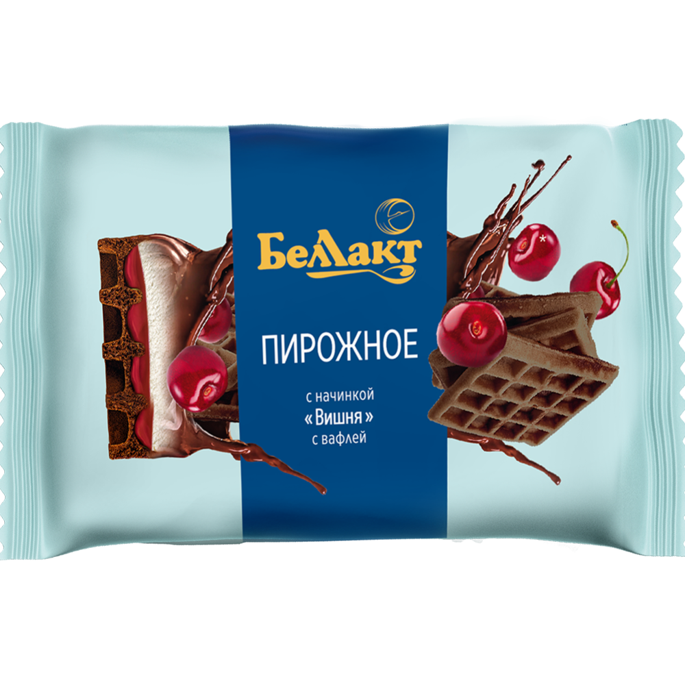 Пирожное с творогом с начинкой вишневой в глазури на вафле с какао 23% 100г