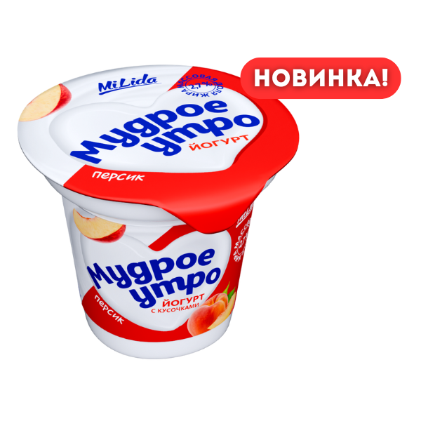 Состав: молоко нормализованное, полуфабрикат наполнитель фруктовый "Персик" асептического консервирования (персик быстрозамороженный, сахар, вода питьевая, стабилизатор - Е1442, ароматизаторы натуральные, краситель – Е160а, регулятор кислотности - Е331(iii)), сахар, молоко сухое обезжиренное, комплексная пищевая добавка (стабилизатор - Е1442, желатин пищевой, эмульгатор - Е471, стабилизаторы - Е440, Е412), закваска термофильных молочнокислых стрептококков и молочнокислой болгарской палочки.