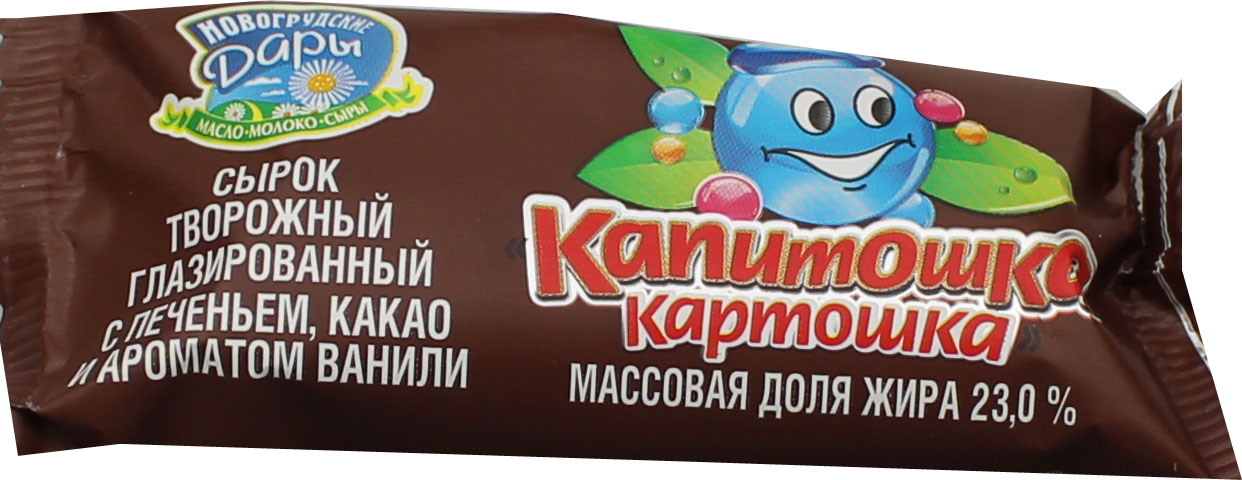Состав: творог, кондитерская глазурь на заменителе какао масла(сахар, заменитель какао-масла-лауринового типа (рафинированное, дезодорированное пальмовоядровое масло, эмульгаторы)), сахар, масло сладкосливочное, печенье сахарное (мука пшеничная высшего сорта, сахар, жиры растительные рафинированные дезодорированные, инвертный сироп, крахмал кукурузный, продукты яичные, пудра ванильная, соль йодированная, разрыхлители, какао-порошок, ароматизатор "Ванилин"